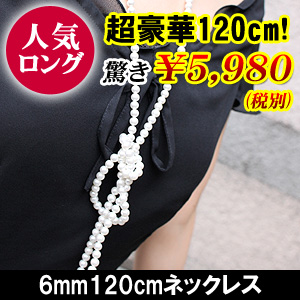 貝パール ロングネックレス 6mm真珠 120cm ホワイトorブラック