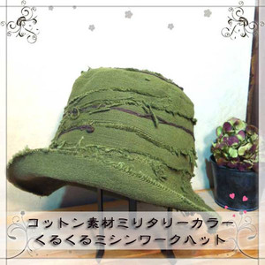 | コットン素材ミリタリーカラーくるくるミシンワークハット(カーキ) |