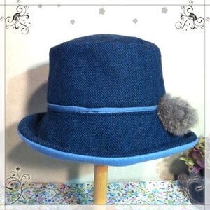ハンドメイド帽子 グリーン ヘリンボーン ハット