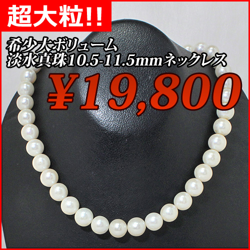 【超大粒10.5-11.5mm】淡水真珠ネックレス42cm!希少な、ボリューム満点の大粒パール使用
