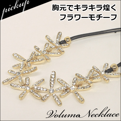 ビジューネックレス(フラワーモチーフ5)!トップが豪華!今流行のお洒落デザインネックレス(ボリュームネックレス)